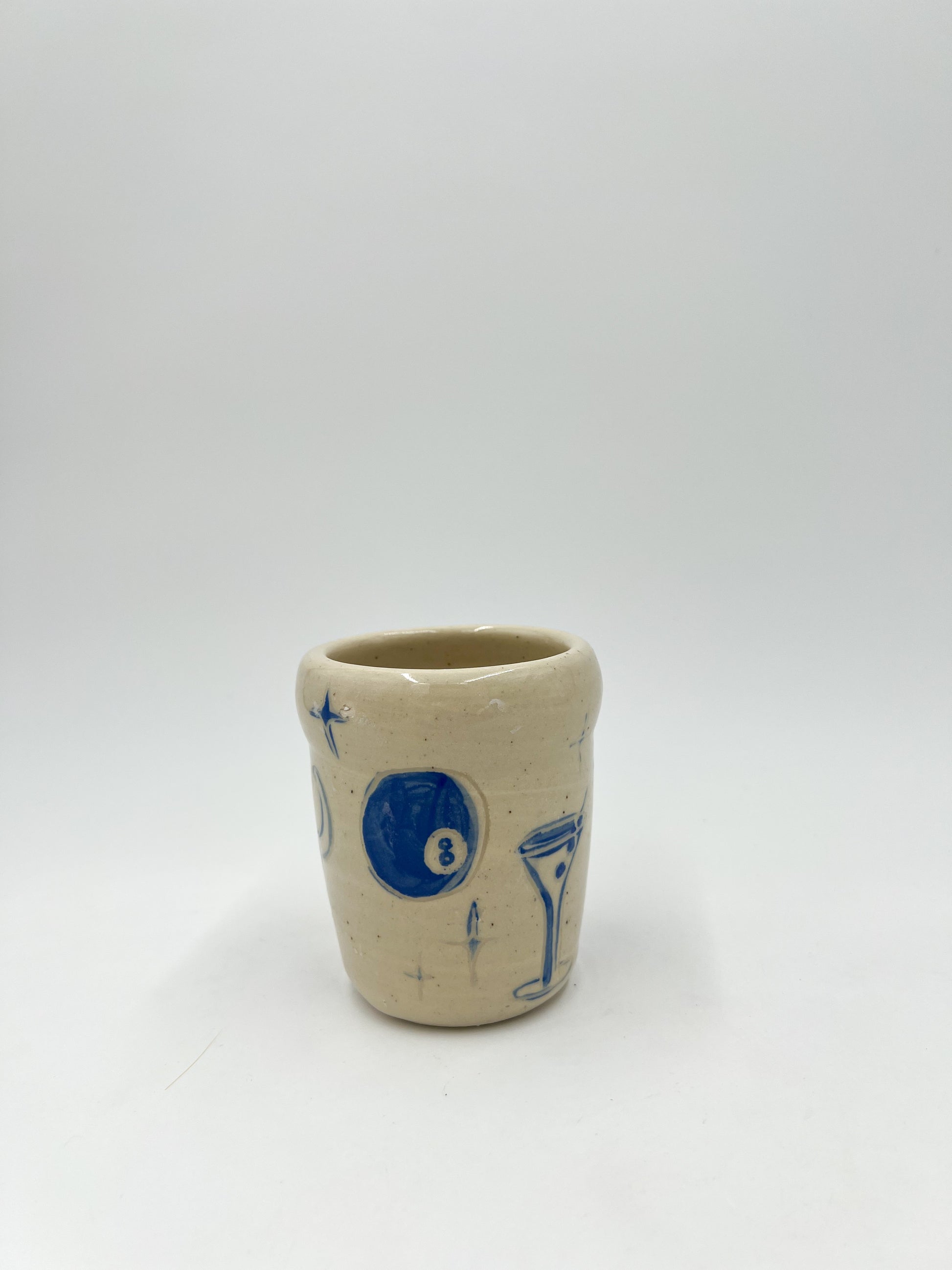 Handthrown stoneware cup with sgraffito'd details straight out of my sketchbook. Flash inspired. Every piece is one of a kind.
