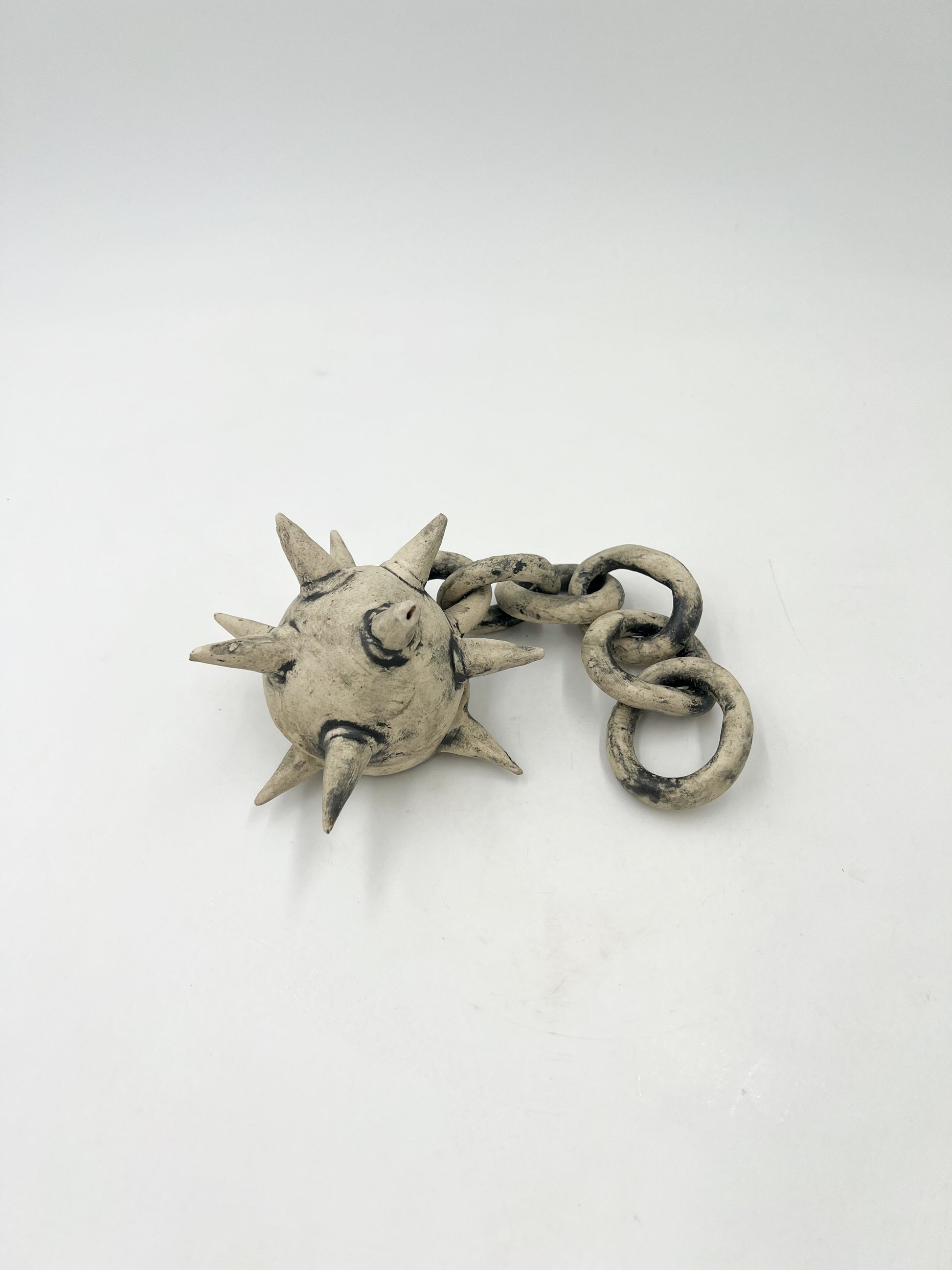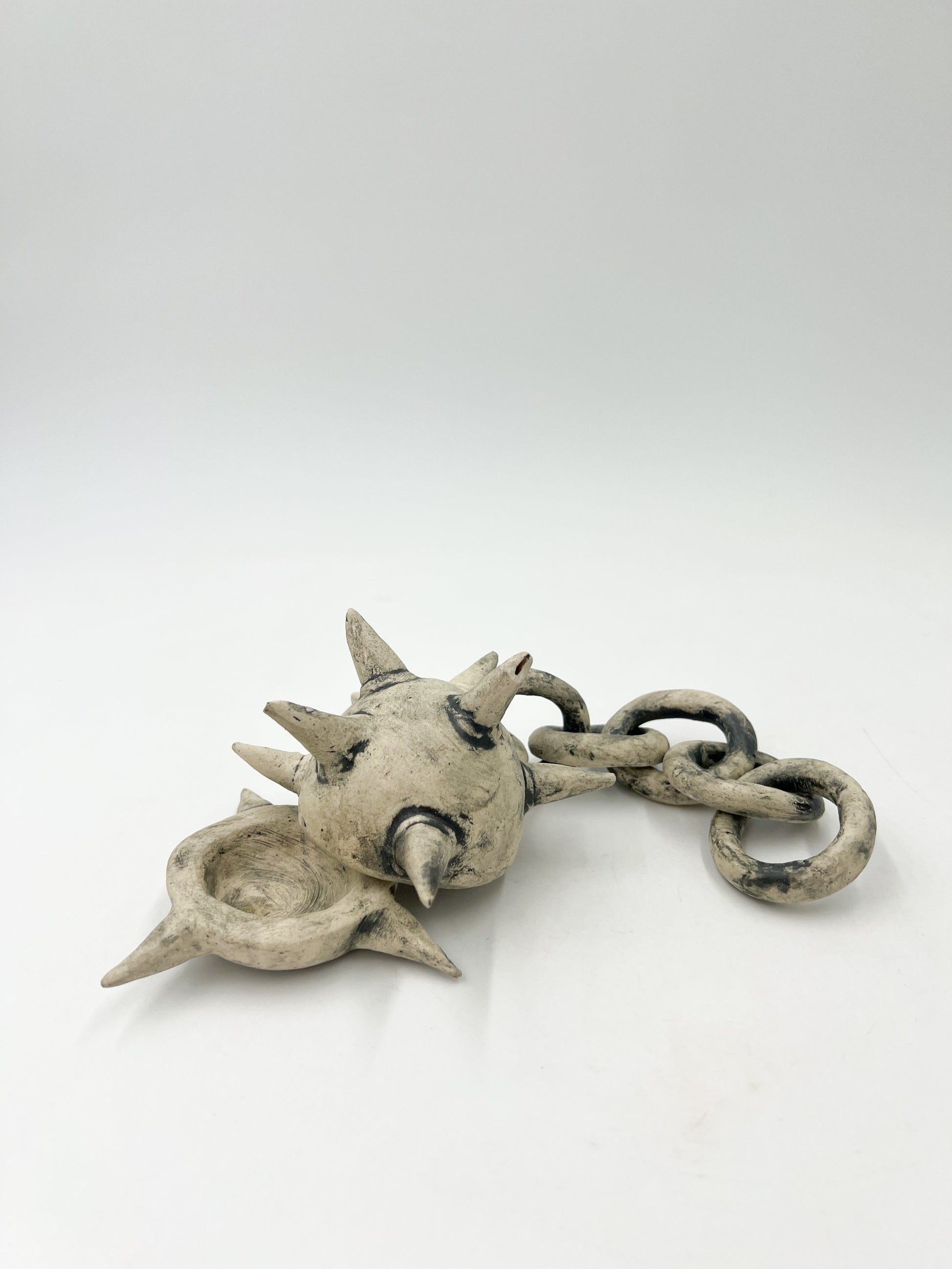 Handbuilt mini morning star jar. Perfect to hold the most special little trinket. Ceramic chain moves freely.